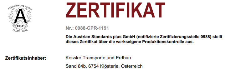 Zertifikat über die werkseigene Produktionskontrolle